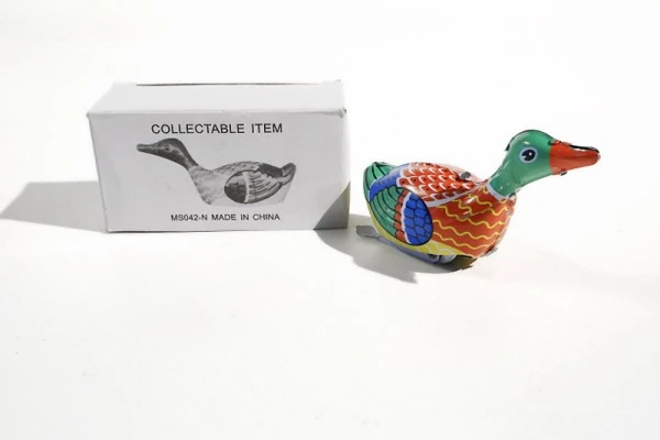 Die Ente mit dem mechanischem Aufziehwerk hat einen festen Schlüssel direkt am Produkt, so kann er nicht verloren gehen.