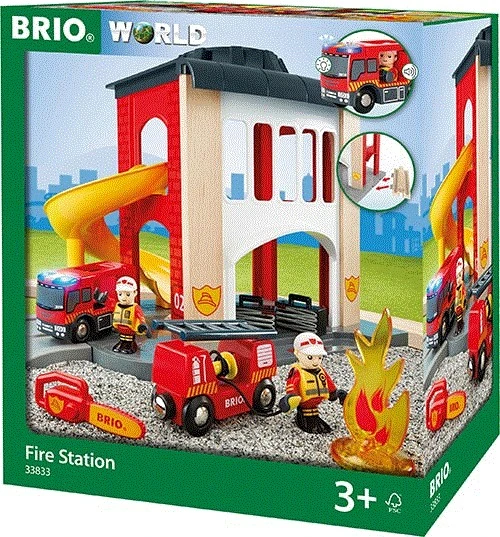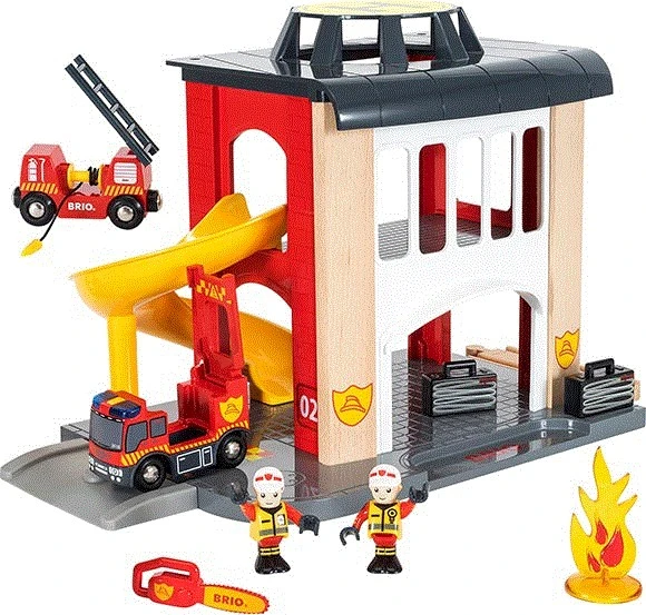 Tatü-Tata die Feuerwehr ist da! Die Große Feuerwehr-Station mit Einsatzfahrzeug von BRIO ist perfekt für Feuerwehr-Fans geeignet. Sie verfügt über liebevolle kleine Details wie einen Hubschrauberlandeplatz, eine Rutsche, Feuerwehrautos, Feuer, eine Kettensäge und Feuerwehrmänner. Ein Auto verfügt über eine funktionfähige Sirene und Blaulicht, um den Einsatz noch authentischer nachspielen zu können. Die Sation ist die perfekte Ergänzung für die Holzeisenbahn von BRIO.