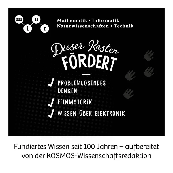 • Inhalt: Modellbausatz, 2 Motoren, Fernbedienung, IR-Sensoren, farbig bebilderte Anleitung