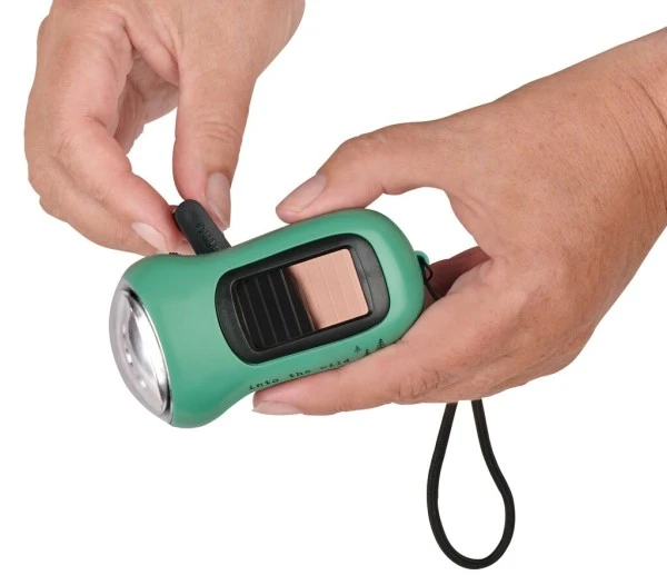 • Taschenlampe mit Dynamo- und Solar-Antrieb