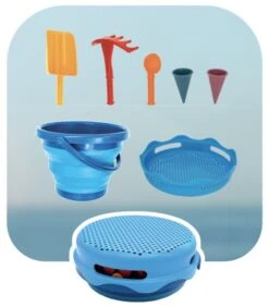 • Falteimer, Sieb und 5 Spielzeuge